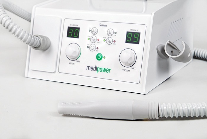 Аппарат для педикюра MediPower представляет собой современный прибор, используемый многими профессиональными мастерами педикюра. Данная модель оснащена встроенным пылесосом, предназначенным для сбора пыли в специальный мешок, благодаря чему работа мастера педикюра значительно упрощается.